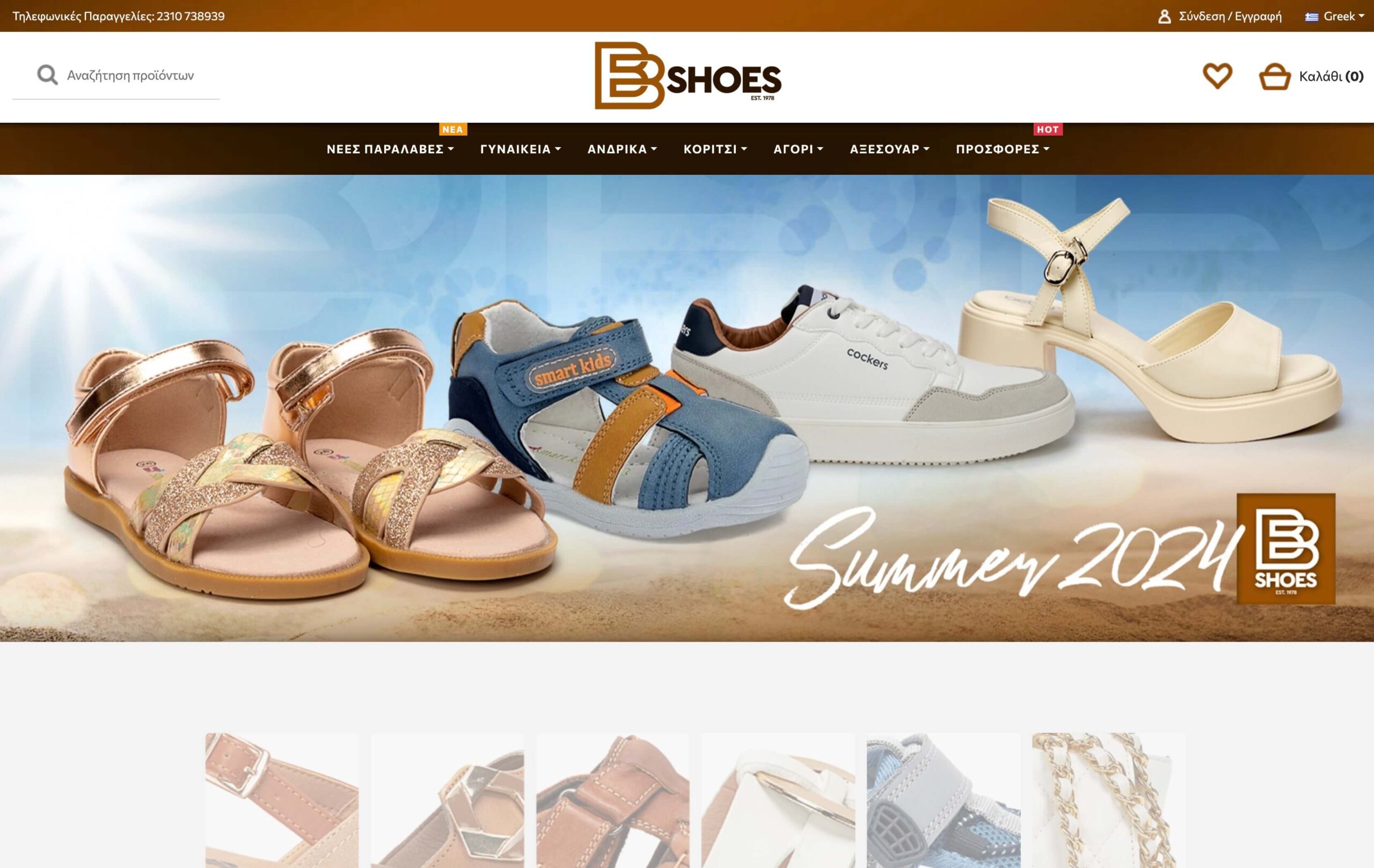Το e-shop BBshoes σχεδιάστηκε εξατομικευμένα, προσαρμοσμένο στις ανάγκες της εταιρείας. Ο custom σχεδιασμός ενσωματώνει μοναδικά γραφικά και μοντέρνες γραμματοσειρές, διατηρώντας ταυτόχρονα τη λειτουργικότητα και την αισθητική που απαιτείται σε ένα σύγχρονο ηλεκτρονικό κατάστημα υποδημάτων. Αυτή η προσέγγιση όχι μόνο προσφέρει μια μοναδική εμπειρία στους χρήστες αλλά και ενισχύει την ταυτότητα της μάρκας.