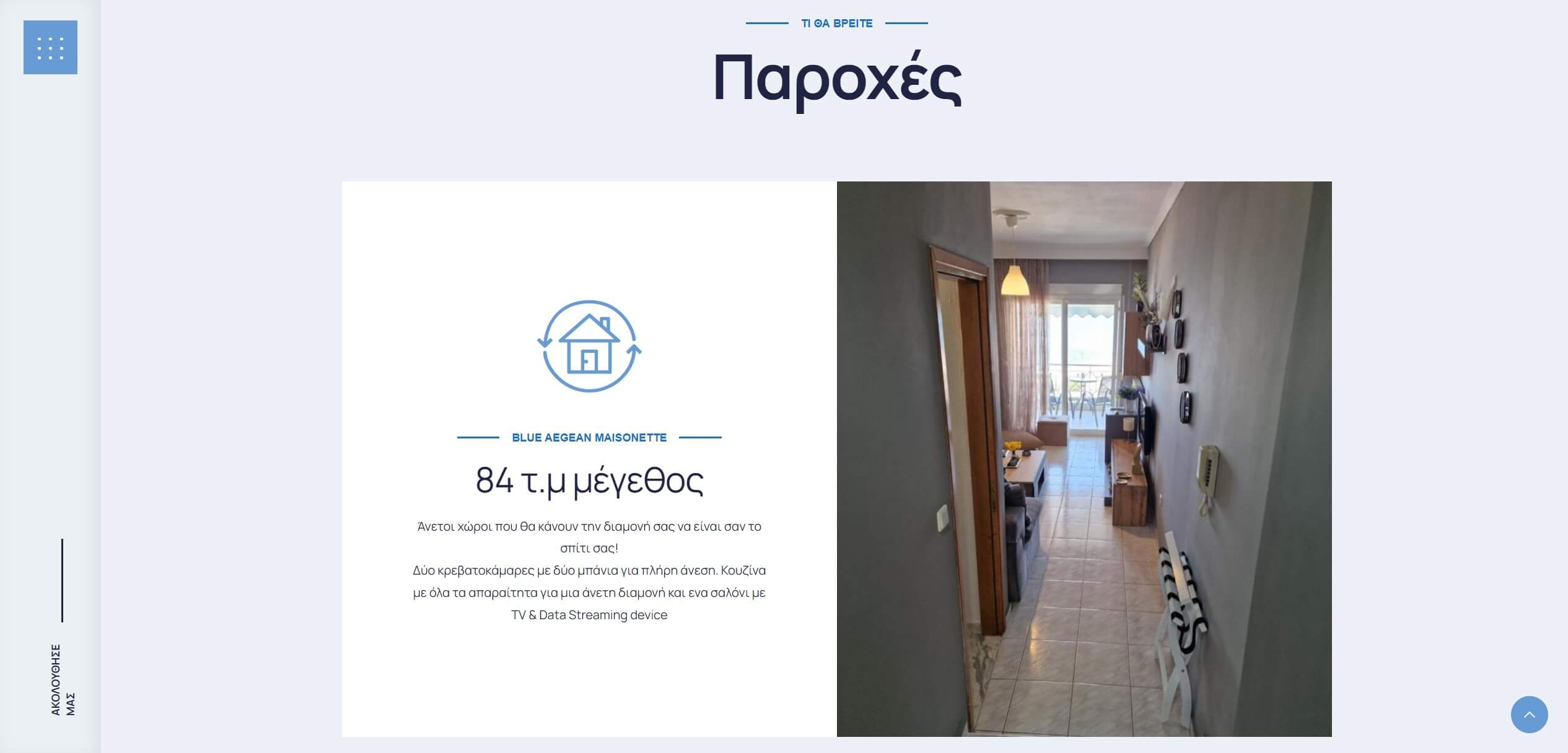 Η ιστοσελίδα αναπτύχθηκε με έμφαση στη δημιουργία μιας φιλόξενης και αισθητικά ευχάριστης εμπειρίας χρήσης. Κάθε στοιχείο της είναι προσεκτικά επιλεγμένο και σχεδιασμένο για να αναδείξει την ομορφιά και τη μοναδικότητα του Blue Aegean Maisonette, με διακοσμητικά στοιχεία που προσδίδουν μια αίσθηση πολυτέλειας και άνεσης.