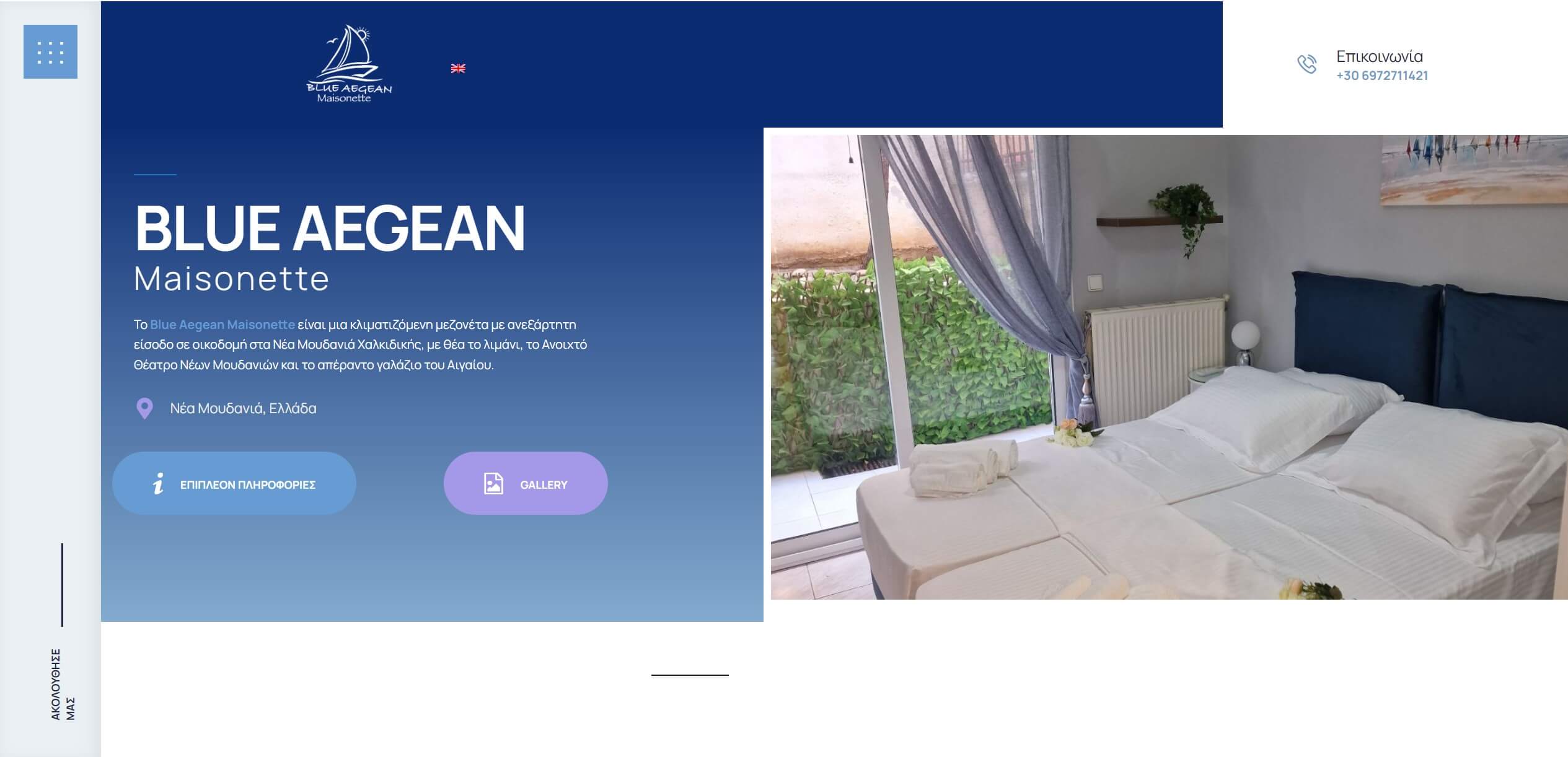 Με χαρά σας παρουσιάζουμε το νέο project μας για την κατασκευή της ιστοσελίδας του Blue Aegean Maisonette. Σχεδιάσαμε αυτήν την πλατφόρμα με ιδιαίτερη προσοχή και αγάπη, με στόχο να αντικατοπτρίζει την μοναδικότητα και την κομψότητα της ενοικιαζόμενης μεζονέτας.